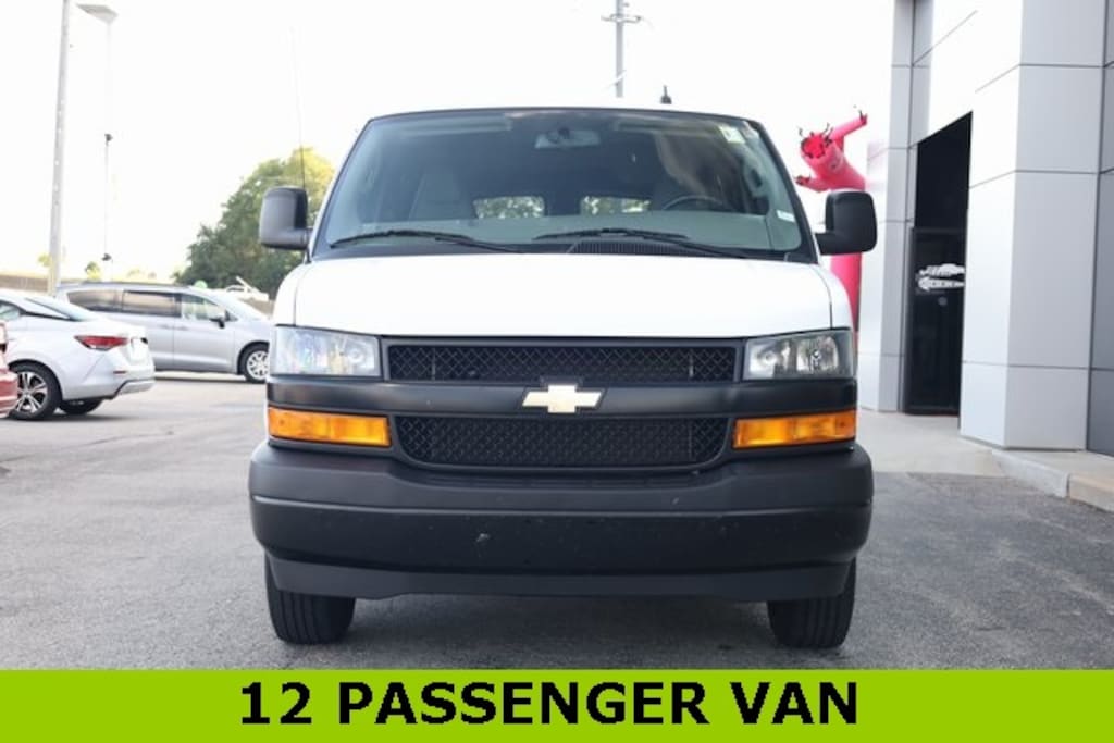 Ed Napleton Honda â" Conveniently located in St. Peters off I-70 and Mid Rivers Mall Drive! Check out this hard-to-find 2023 Chevrolet Express 3500 LS 12-Passenger Van â" CARFAX Certified and backed by the balance of Chevroletâs factory warranty. Perfect for group transportation, shuttle service, or large families, this full-size van offers dependable power and generous space for up to 12 passengers. Powered by a strong 6.6L V8 engine, the Express 3500 delivers excellent performance and towing capability. Inside, youâll find durable cloth seating, front and rear air conditioning, power windows and locks, cruise control, rear vision camera, and a touchscreen infotainment system with Bluetooth® connectivity and USB ports. Safety features include Forward Collision Alert, Lane Departure Warning, and StabiliTrak® Stability Control System for added confidence on the road. Whether you're transporting a team, church group, or just need extra space, this 2023 Express 3500 LS is ready to get the job done. Visit Ed Napleton Honda today to see it in person!.