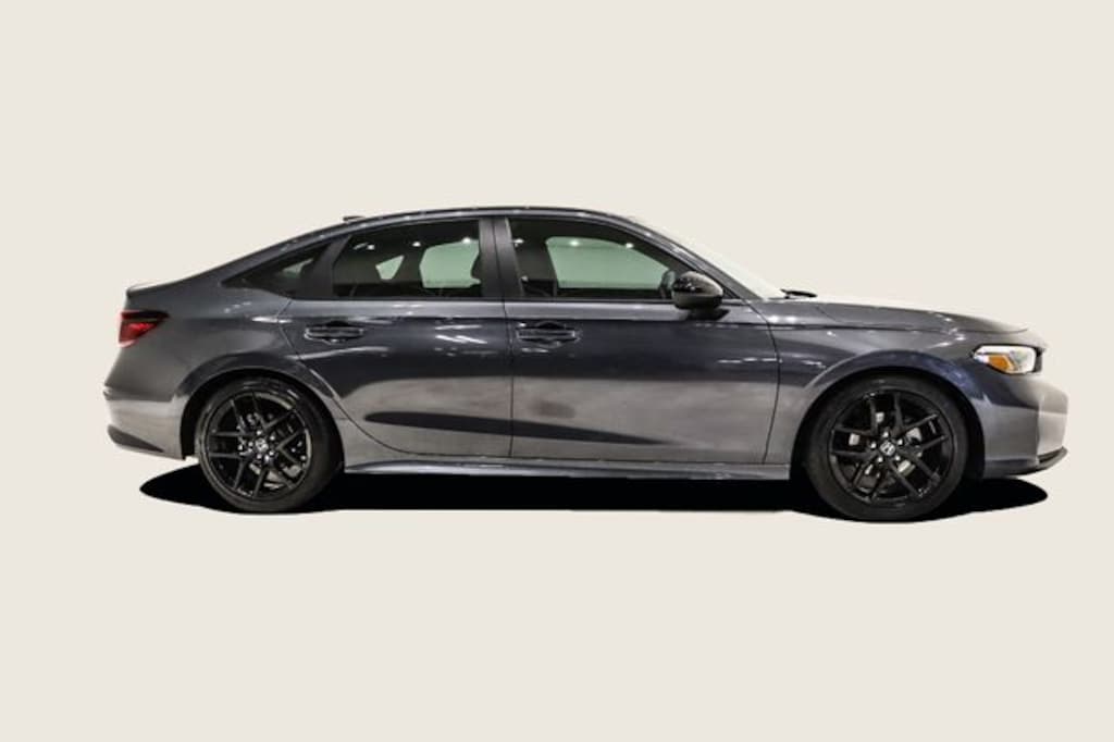 This Civic is well equipped with Black w/Cloth/Leatherette Seating Surfaces, 4-Wheel Disc Brakes, 8 Speakers, ABS brakes, Adaptive Cruise Control: Adaptive Cruise Control (ACC) with Low-Speed Follow, Air Conditioning, Alloy wheels, AM/FM radio, Apple CarPlay/Android Auto, Auto High-beam Headlights, Automatic temperature control, Blind Spot Information (BSI) System warning, Brake assist, Bumpers: body-color, Cloth/Leatherette Seating Surfaces, Delay-off headlights, Driver door bin, Driver vanity mirror, Dual front impact airbags, Dual front side impact airbags, Electronic Stability Control, Emergency communication system: HondaLink, Exterior Parking Camera Rear, Four wheel independent suspension, Front anti-roll bar, Front Bucket Seats, Front Center Armrest, Front reading lights, Fully automatic headlights, Heated door mirrors, Illuminated entry, Knee airbag, Leather Shift Knob, Leather steering wheel, Low tire pressure warning, Occupant sensing airbag, Outside temperature display, Overhead airbag, Panic alarm, Passenger door bin, Passenger vanity mirror, Power door mirrors, Power steering, Power windows, Radio data system, Radio: 180-Watt Audio System, Rear anti-roll bar, Rear seat center armrest, Rear side impact airbag, Rear window defroster, Remote keyless entry, Security system, Speed control, Speed-sensing steering, Split folding rear seat, Steering wheel mounted audio controls, Tachometer, Telescoping steering wheel, Tilt steering wheel, Traction control, Trip computer, and Wheels: 18" Gloss Black Alloy.