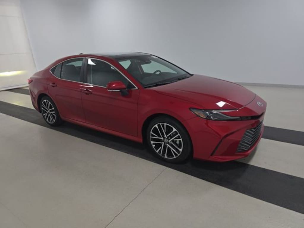This Camry is well equipped with 2.5L 4-Cylinder 16V DOHC, Black w/Leather Seat Trim, ABS brakes, Active Cruise Control, Alloy wheels, Electronic Stability Control, Front dual zone A/C, Heated door mirrors, Heated Front Bucket Seats, Heated front seats, Illuminated entry, Low tire pressure warning, Remote keyless entry, Traction control, 4-Wheel Disc Brakes, 6 Speakers, Air Conditioning, AM/FM radio: SiriusXM, Apple CarPlay/Android Auto, Auto High-beam Headlights, Auto-dimming Rear-View mirror, Automatic temperature control, Brake assist, Bumpers: body-color, Delay-off headlights, Driver door bin, Driver vanity mirror, Dual front impact airbags, Dual front side impact airbags, Emergency communication system: Safety Connect (up to 10-year trial subscription), Exterior Parking Camera Rear, Four wheel independent suspension, Front anti-roll bar, Front Bucket Seats, Front Center Armrest, Front reading lights, Fully automatic headlights, Garage door transmitter: HomeLink, Heated steering wheel, Knee airbag, Leather Shift Knob, Leather steering wheel, Leather/Dinamica Microfiber Seat Trim, Occupant sensing airbag, Outside temperature display, Overhead airbag, Overhead console, Panic alarm, Passenger door bin, Passenger vanity mirror, Power door mirrors, Power driver seat, Power passenger seat, Power steering, Power windows, Radio data system, Radio: Toyota Audio Multimedia w/12.3" Touchscreen, Rear anti-roll bar, Rear reading lights, Rear seat center armrest, Rear side impact airbag, Rear window defroster, Security system, Speed control, Speed-sensing steering, Split folding rear seat, Steering wheel mounted audio controls, Telescoping steering wheel, Tilt steering wheel, Trip computer, Turn signal indicator mirrors, Variably intermittent wipers, and Wheels: 18" Black & Machine-Finished Alloy.