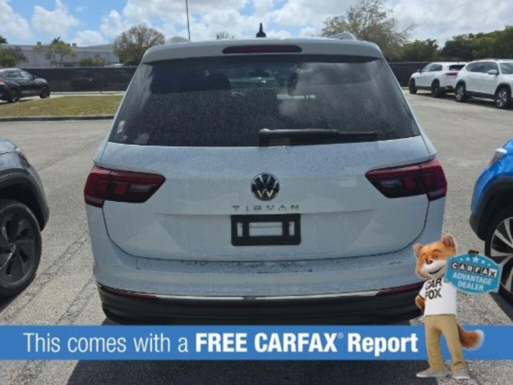 The Tiguan's sleek exterior in White complements its refined interior, featuring a Leatherette-Wrapped Steering Wheel and Heated Front Bucket Seats. Enjoy the convenience of the Composition Color AM/FM Radio, Rear-View Camera, and Automatic Climate Control.